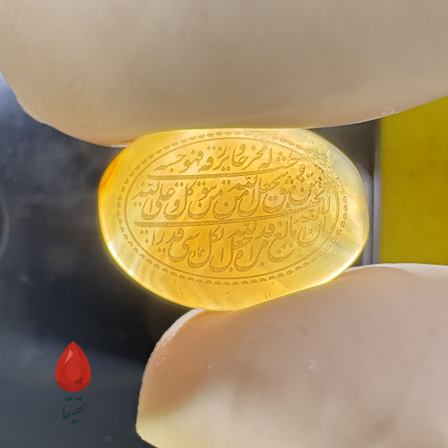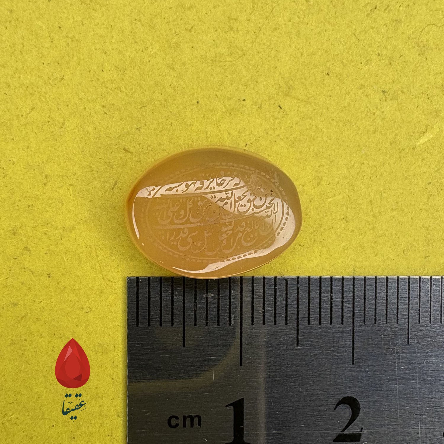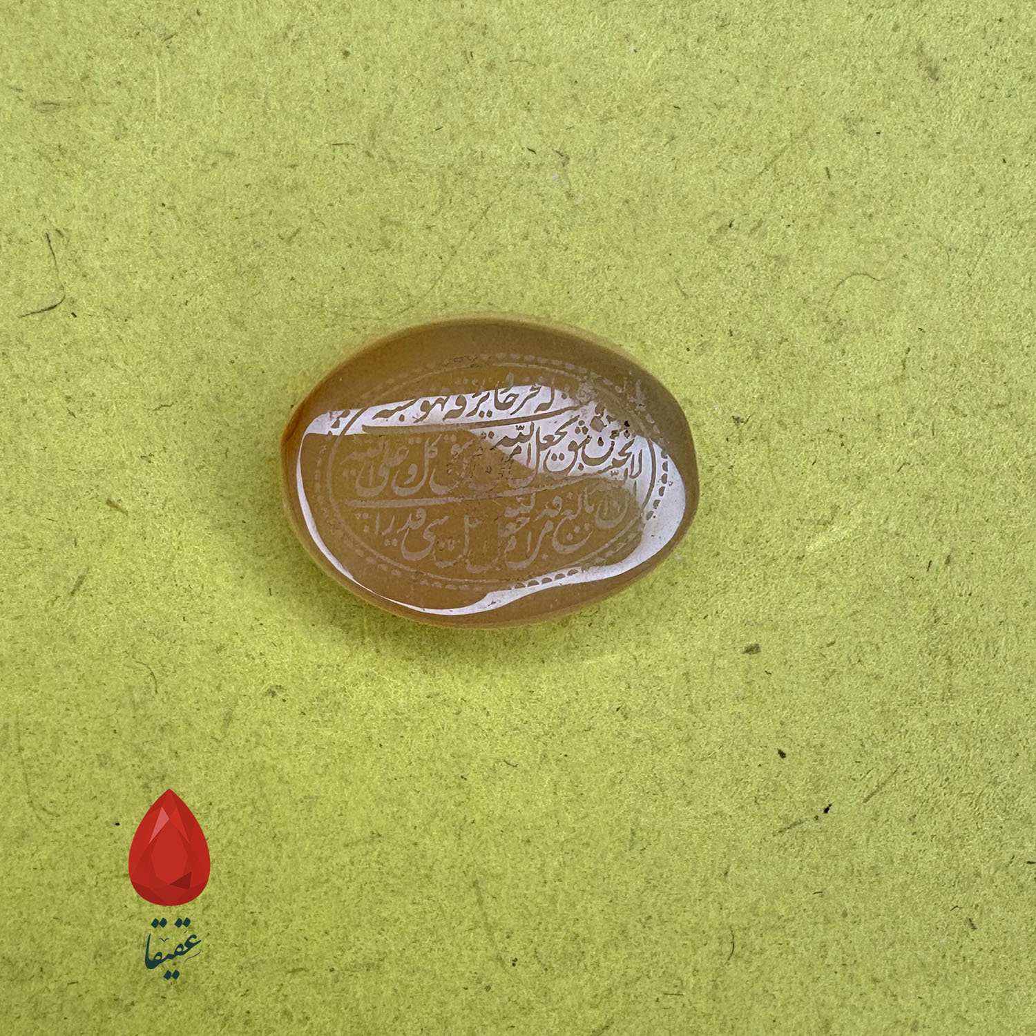 سنگ عقیق زرد با حکاکی «وَ مَن یَتَّقِ اللَّهَ»