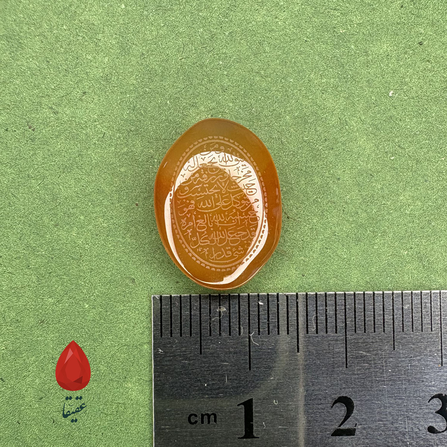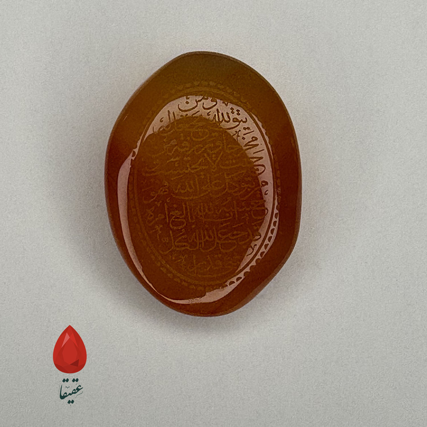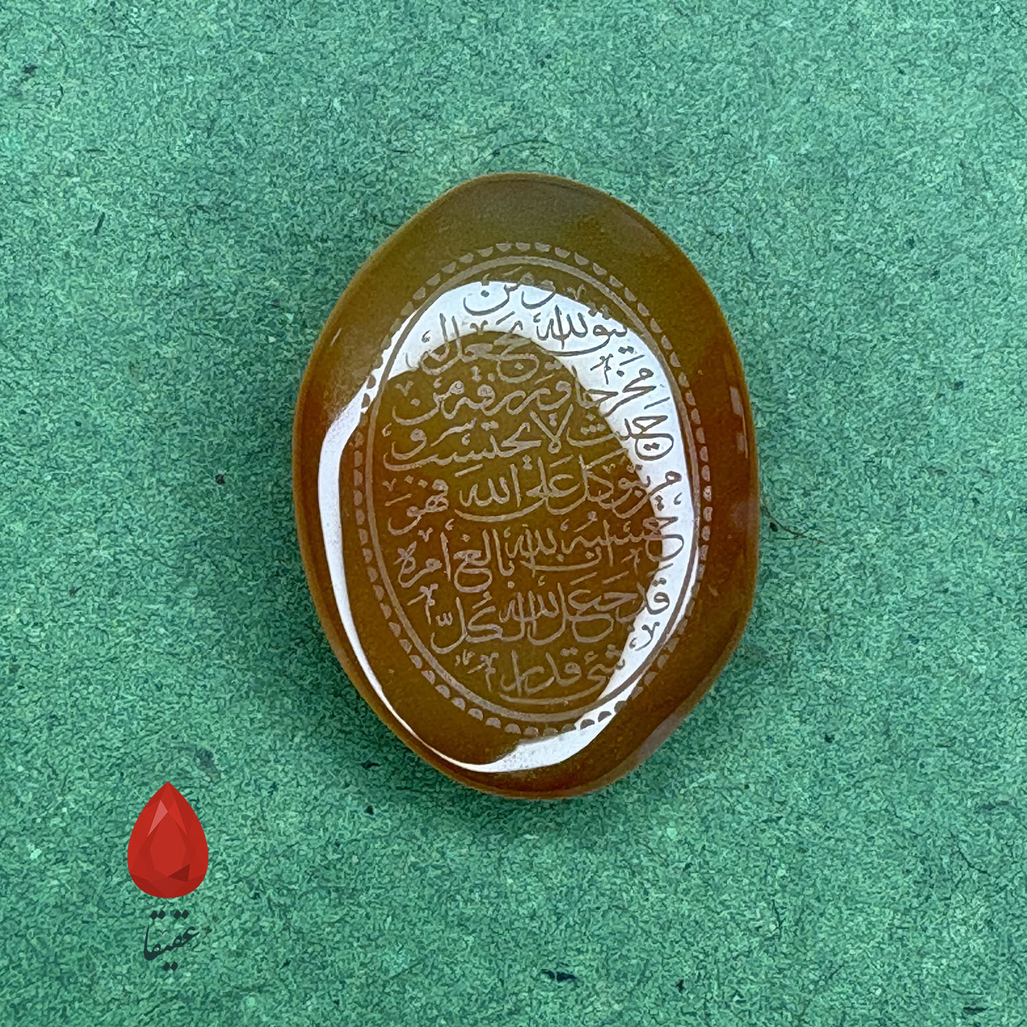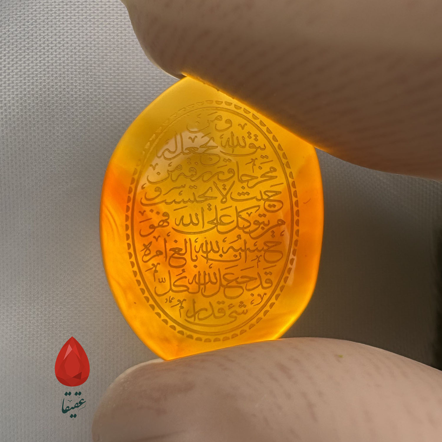 سنگ کهربایی با حکاکی «وَ مَن یَتَّقِ اللَّهَ»