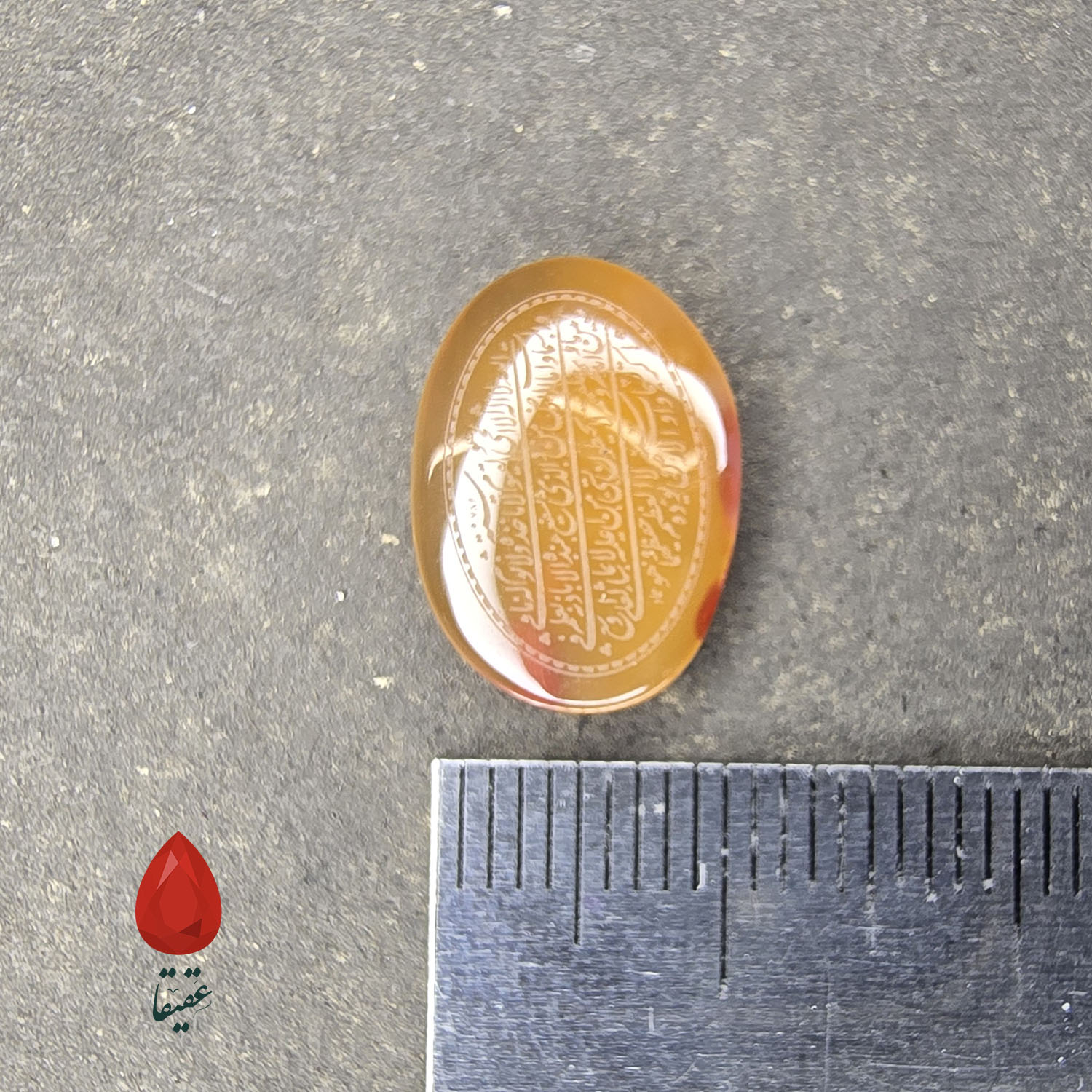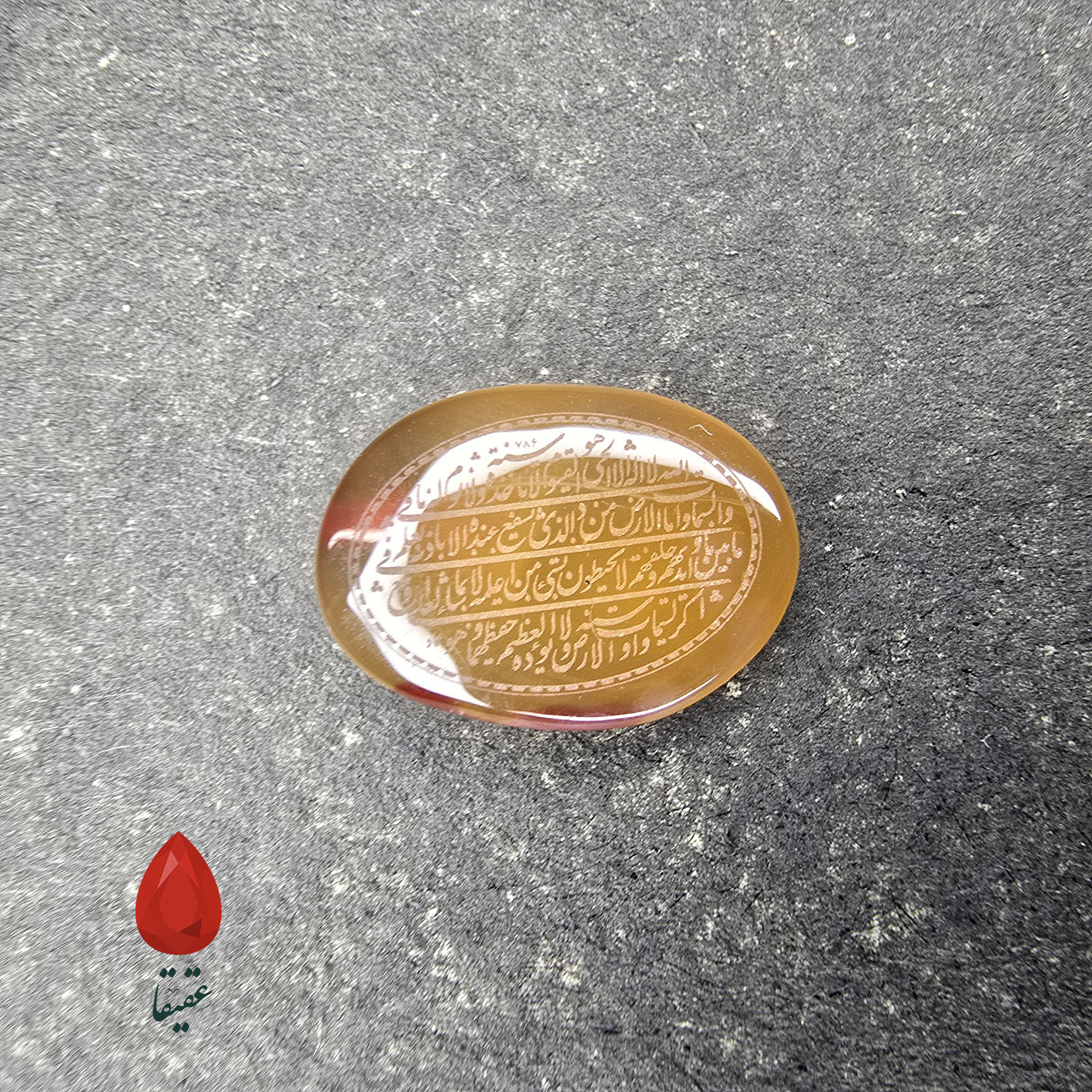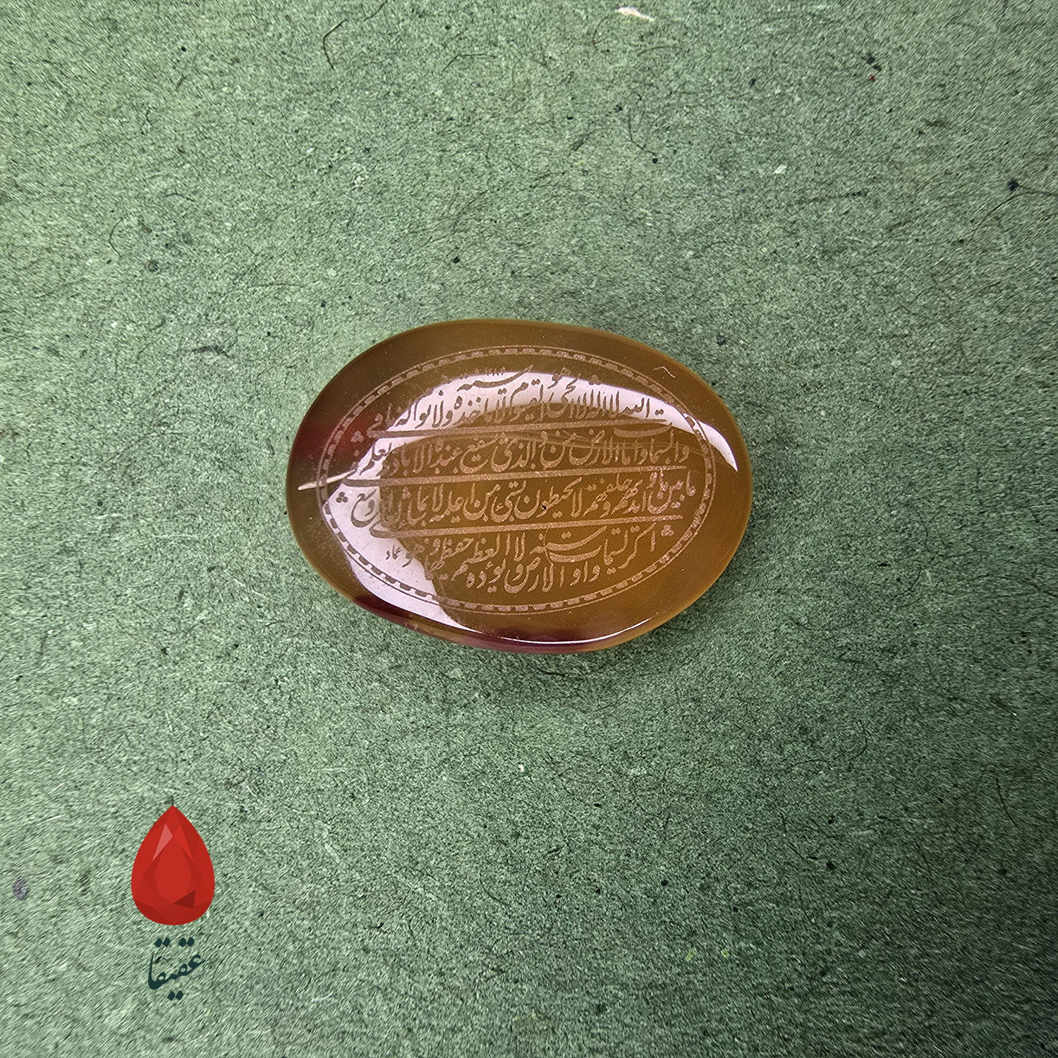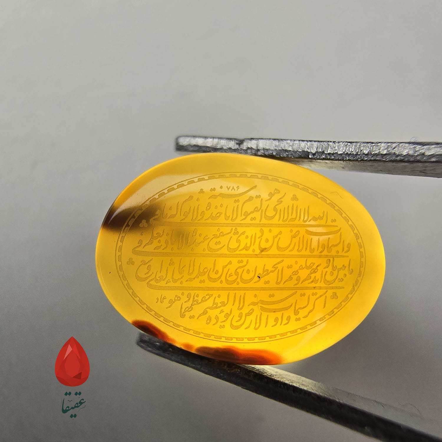 ✨ سنگ عقیق کهربایی با حکاکی آیهالکرسی