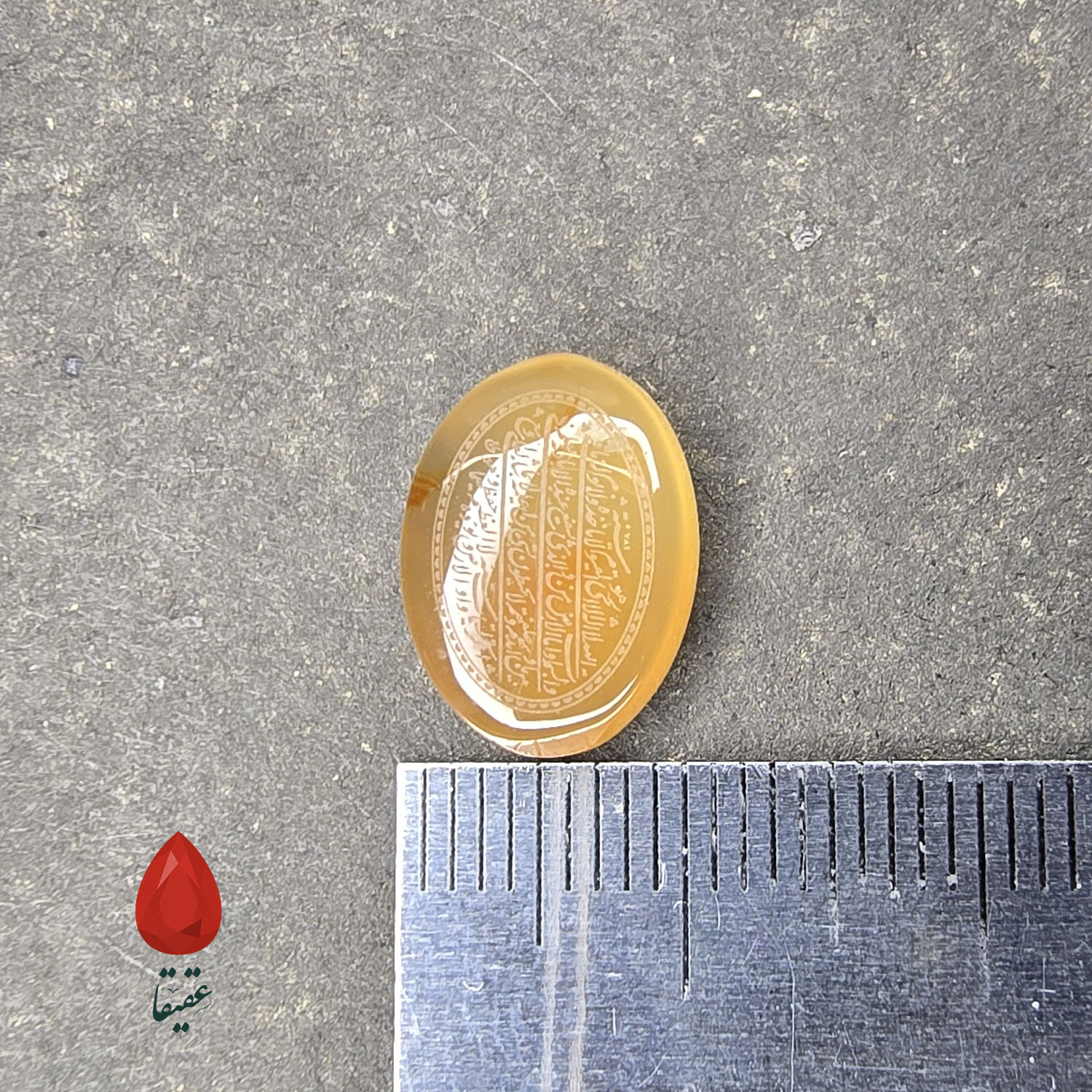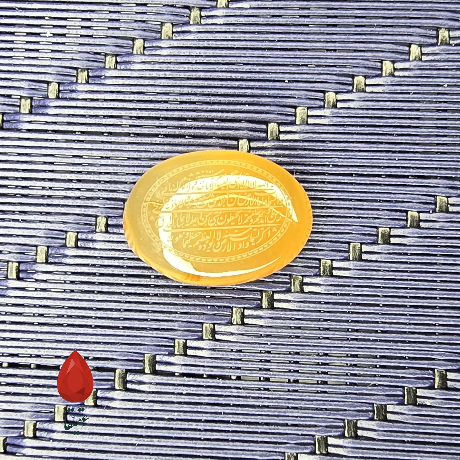 ✨ سنگ عقیق زرد حکاکی‌شده با آیه‌الکرسی