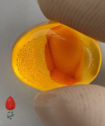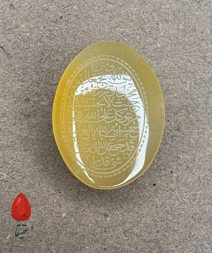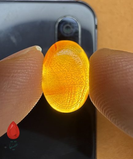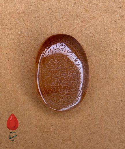 🟠 سنگ عقیق کهربایی حکاکیشده با «وَ مَن یَتَّقِ الله»