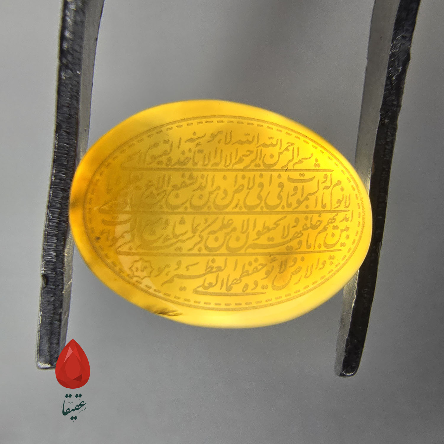 ✨ سنگ عقیق زرد اصل با حکاکی آیهالکرسی